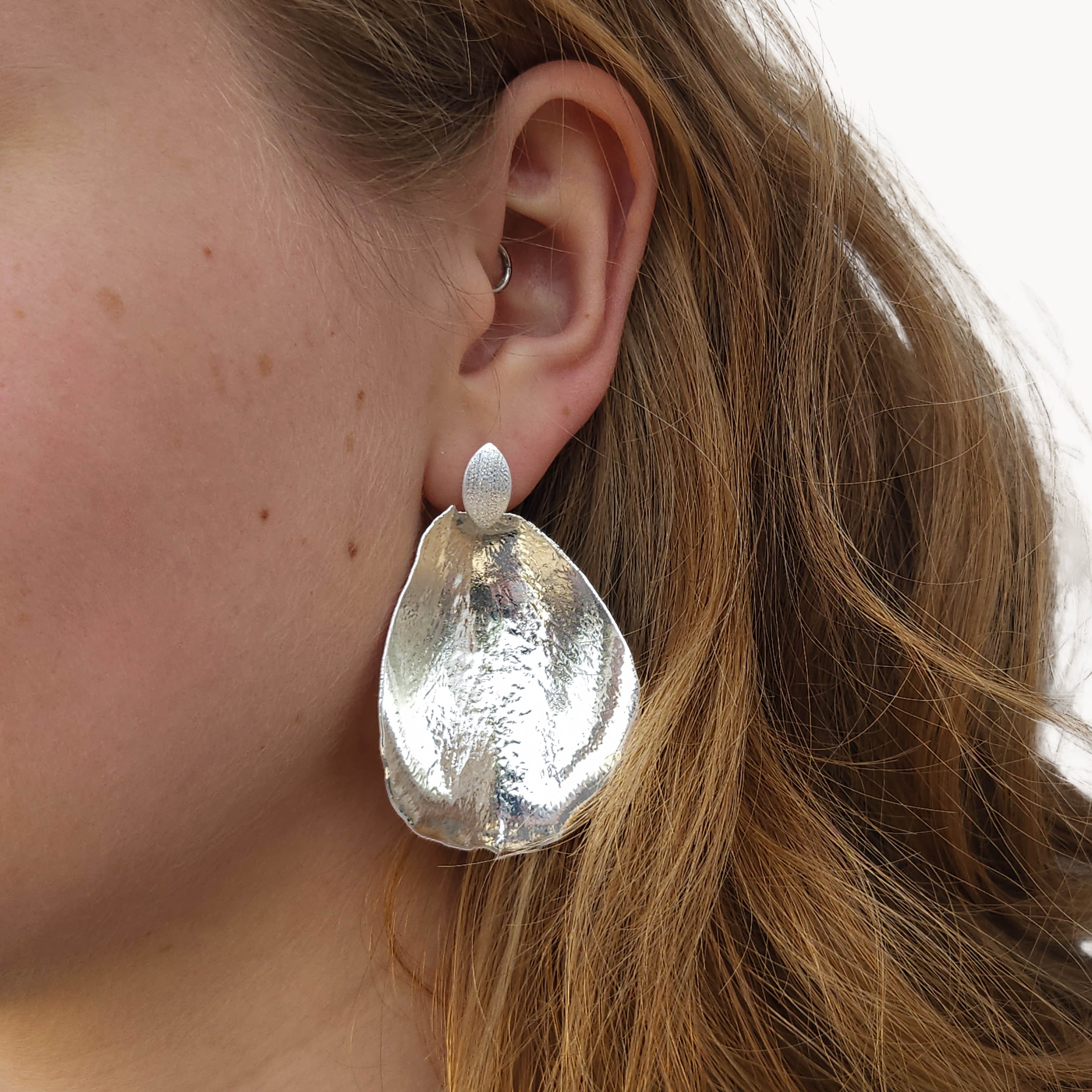 Flora rose ørestikker blad forsølvet er unikke ørestikker, hvor vi har forgyldt et ægte rosekronblad ved hjælp af elektrolyse! Under den smukke metaloverflade gemmer der sig derfor et ægte rosekronblad.