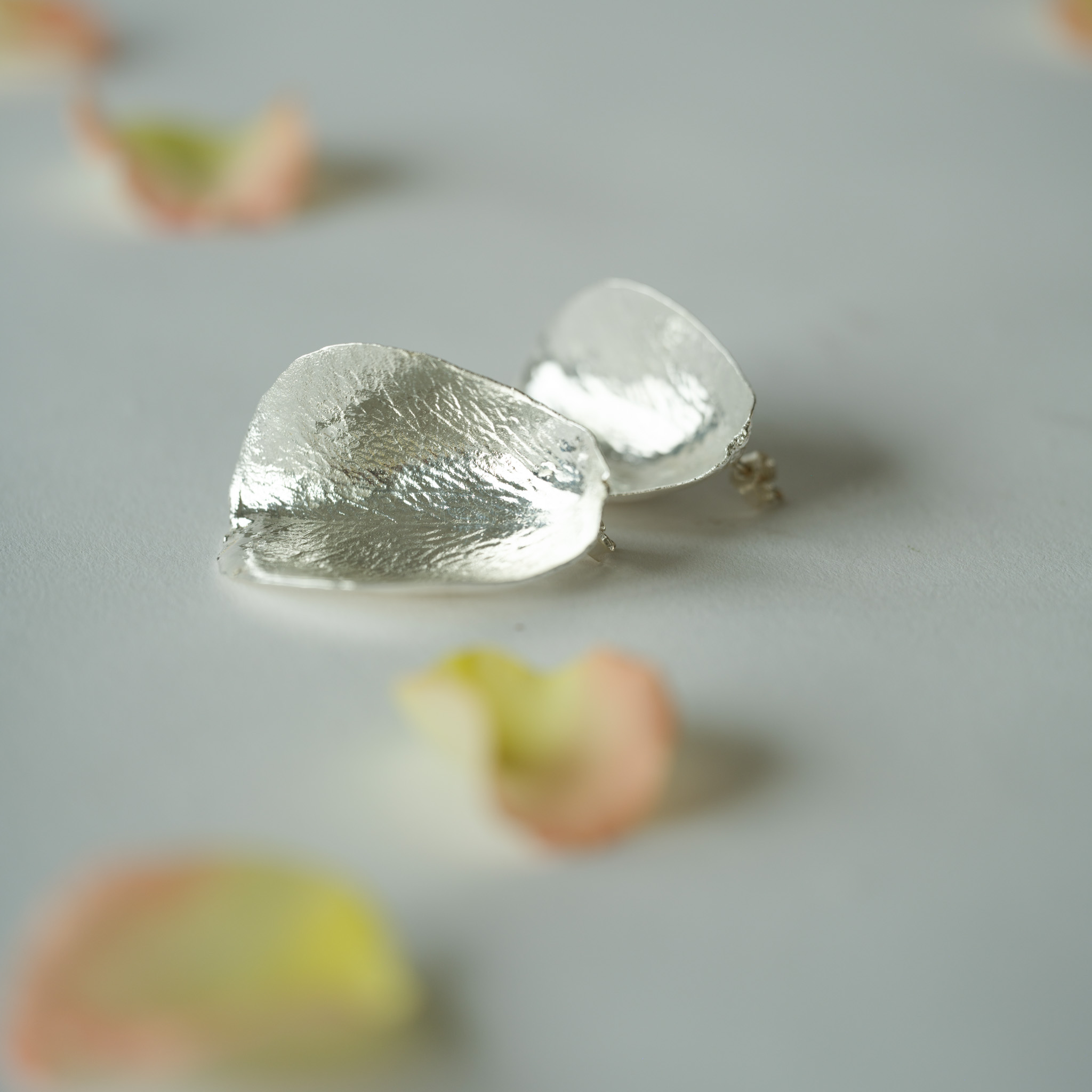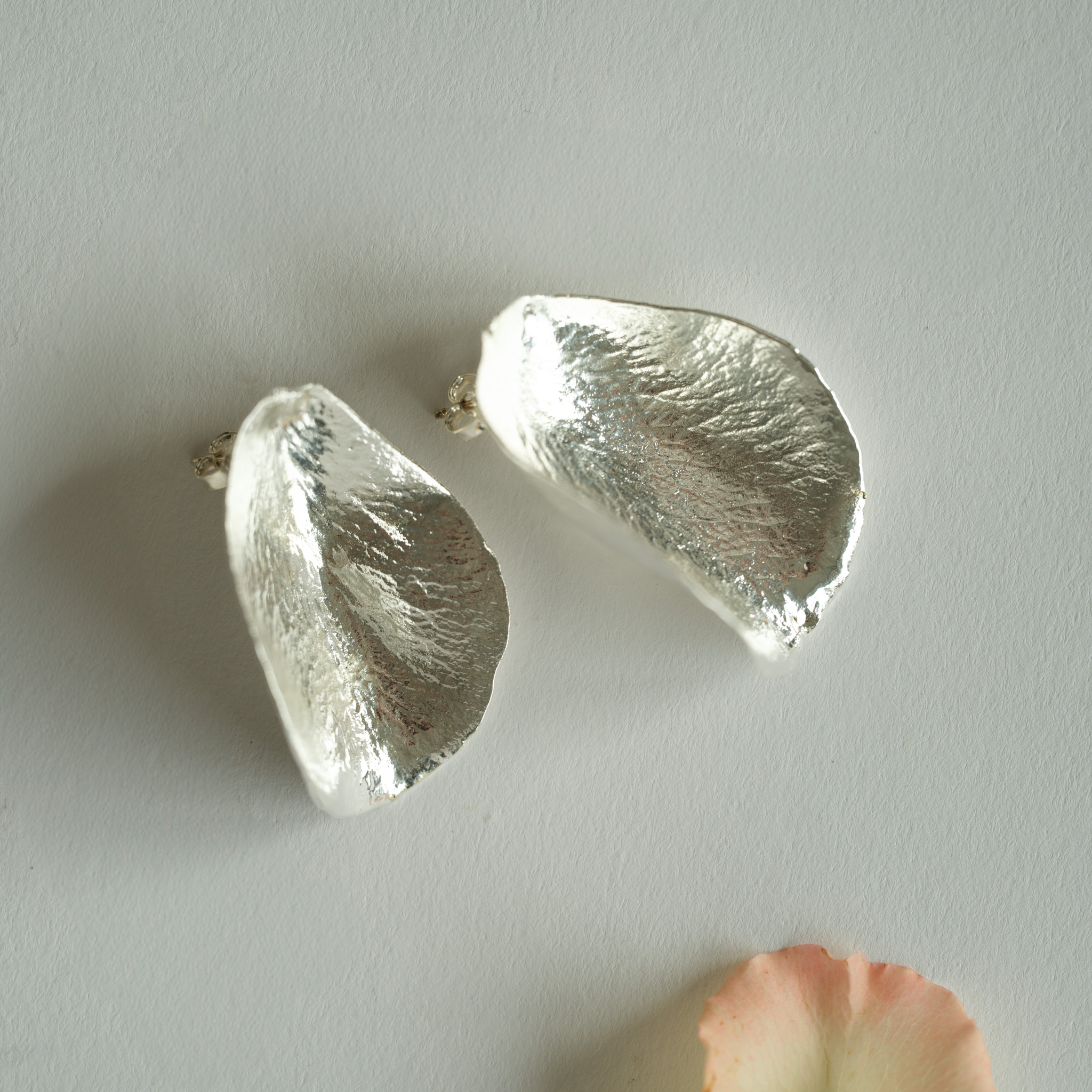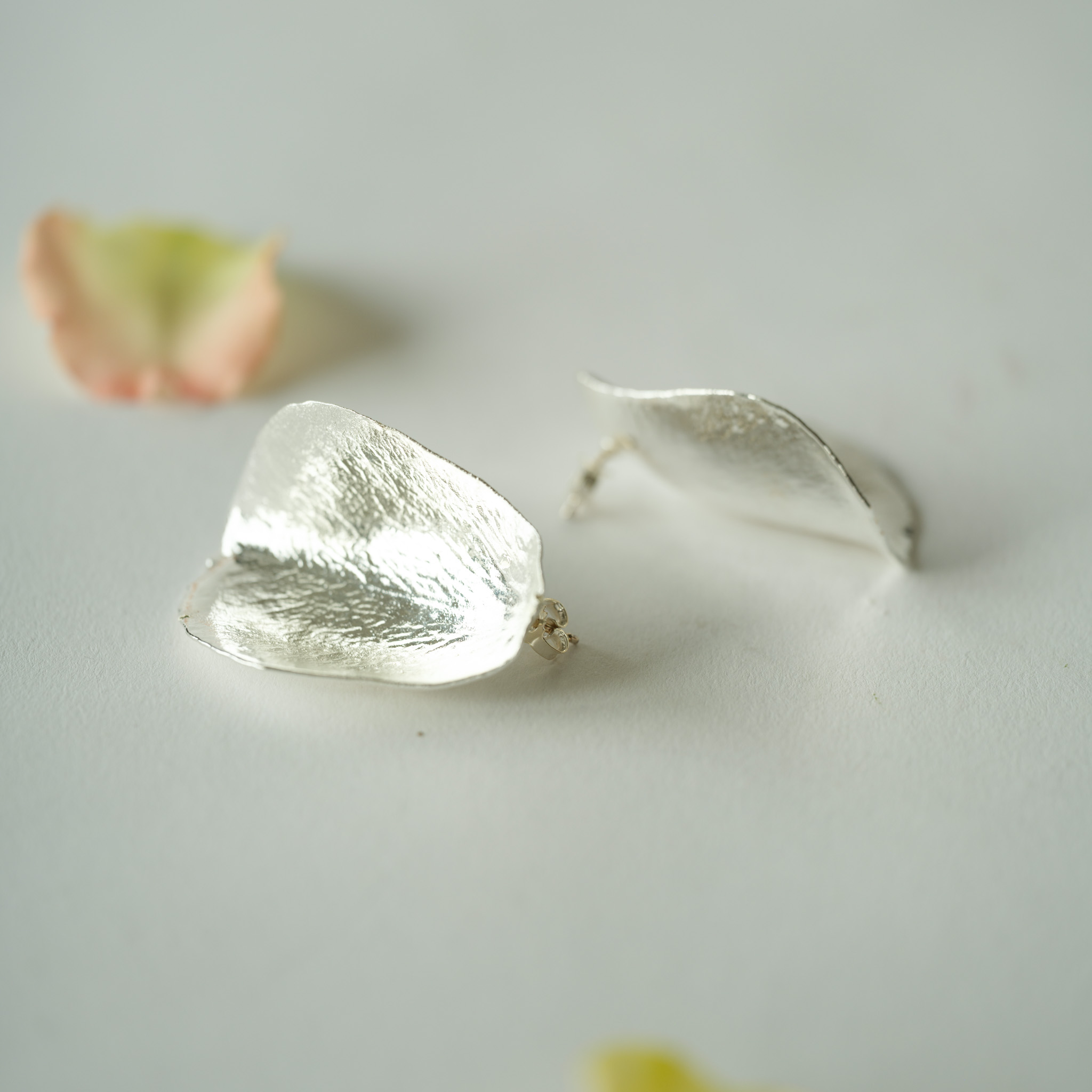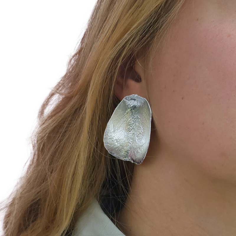 Flora rose ørestikker forsølvet er unikke ørestikker, hvor vi har forsølvet et ægte rosekronblad ved hjælp af elektrolyse! Under den smukke metaloverflade gemmer der sig derfor et ægte rosekronblad.