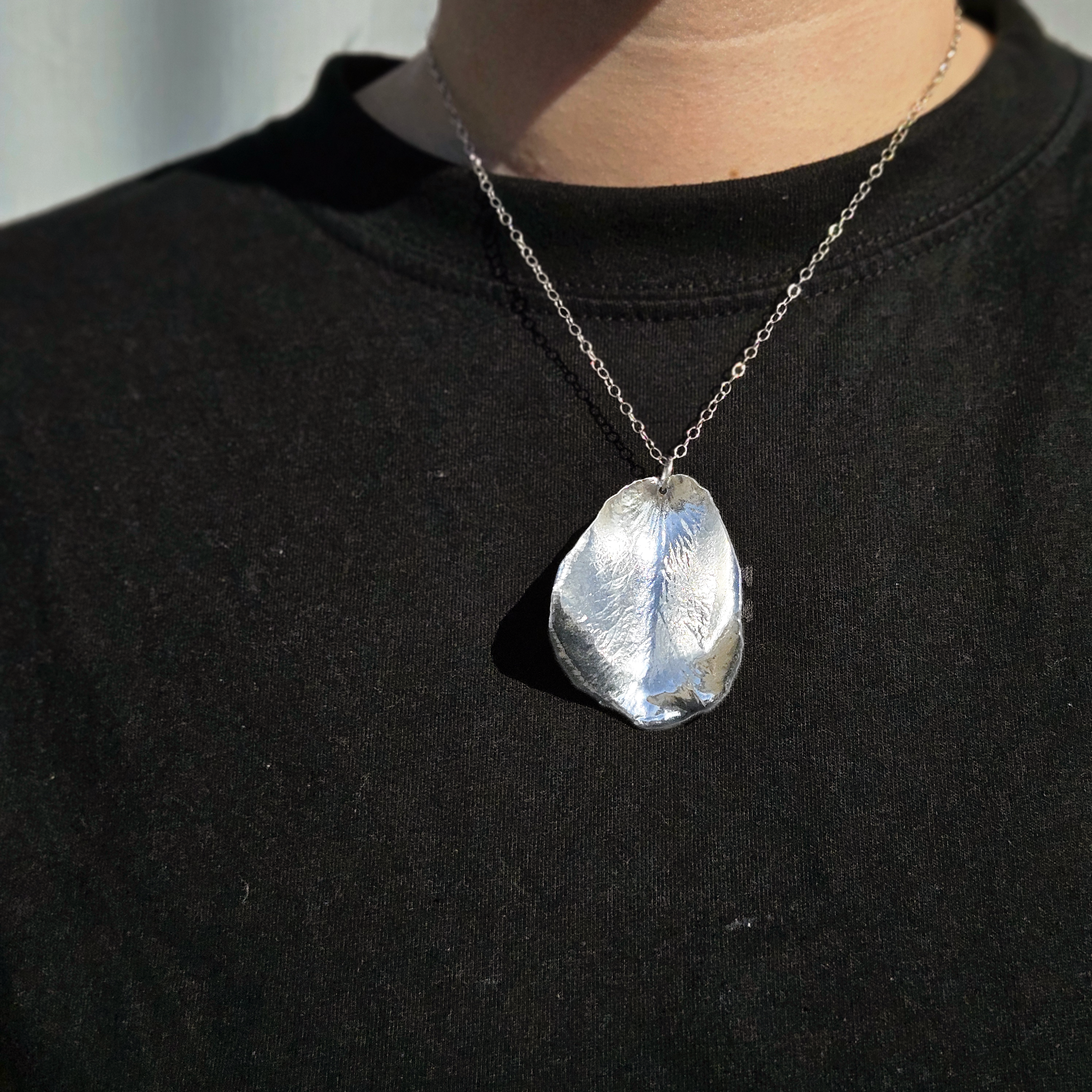 Flora rose vedhæng forsølvet er en unik halskæde, hvor vi har forsølvet et ægte rosekronblad ved hjælp af elektrolyse! Under den smukke metaloverflade gemmer der sig derfor et ægte rosekronblad.