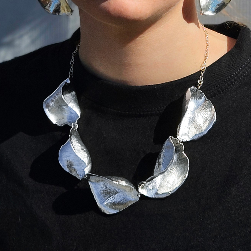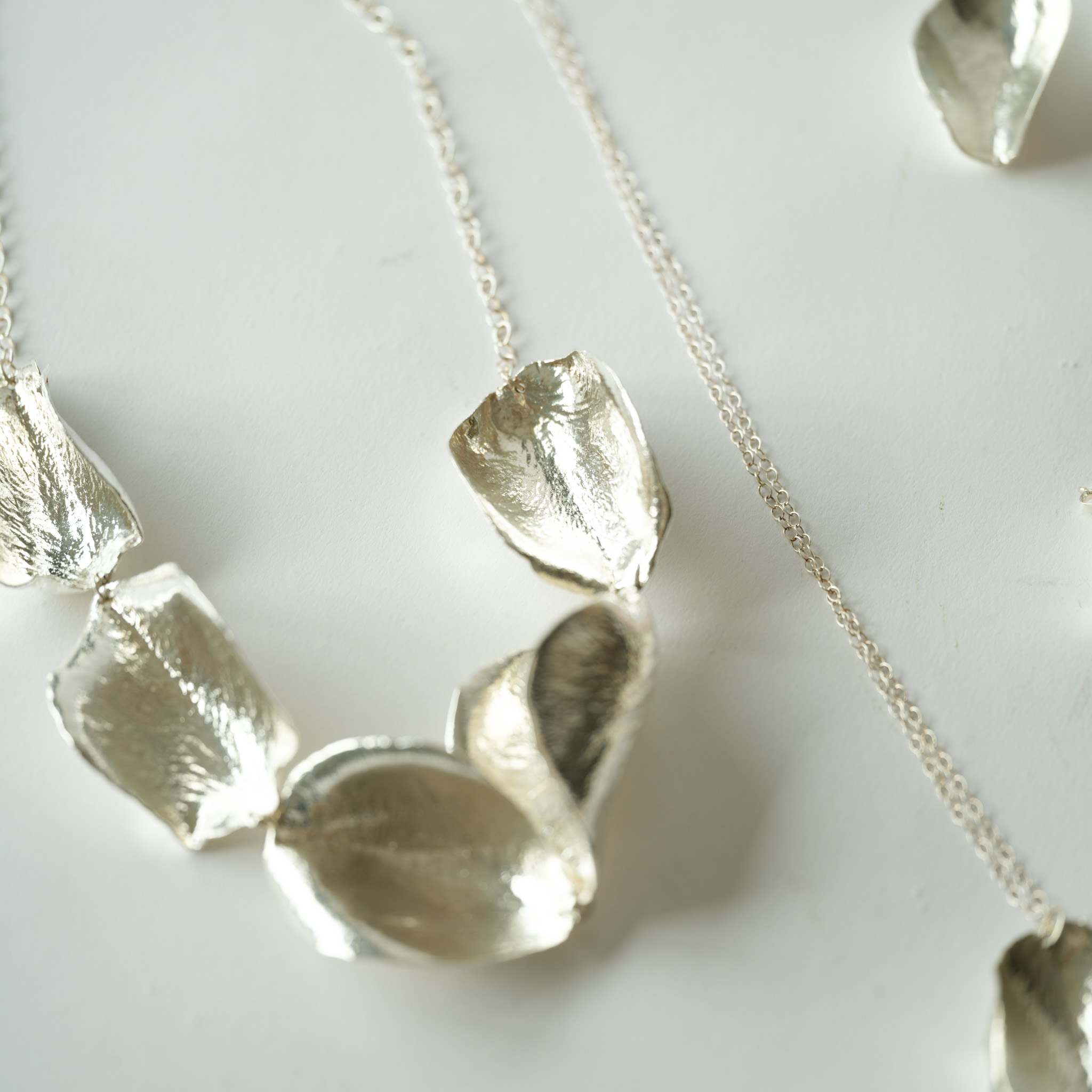 Flora rose halssmykke forsølvet er en unik halskæde, hvor vi har forsølvet ægte rosekronblade ved hjælp af elektrolyse! Under den smukke metaloverflade gemmer der sig derfor et ægte rosekronblad.